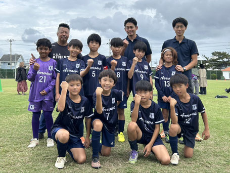 まだまだ暑い日が続いていますが、選手たちは頑張って1勝1敗と勝ち点を挙げることができました。 全体的には声掛けが少なく、元気のない印象でした。 そのためお見合いになってしまい、ピンチになる場面やチャンスを潰してしまう場面も見受けられました。 ボールを持ってもパスの出しどころがなく、ボールを奪われることも多々ありました。 ただ、ドリブルでしかけるなど、チャレンジした結果得点につながったことはよかったと思います! 強い相手と戦ったことでチームとしても個人としても課題が見えたと思います。 動いて声を掛け合うことで連動するシーンが増えてくれば、守備も攻撃もレベルアップできるはず! コーチから指導されたことを各々意識して、引き続き練習を重ねて頑張っていきましょう!